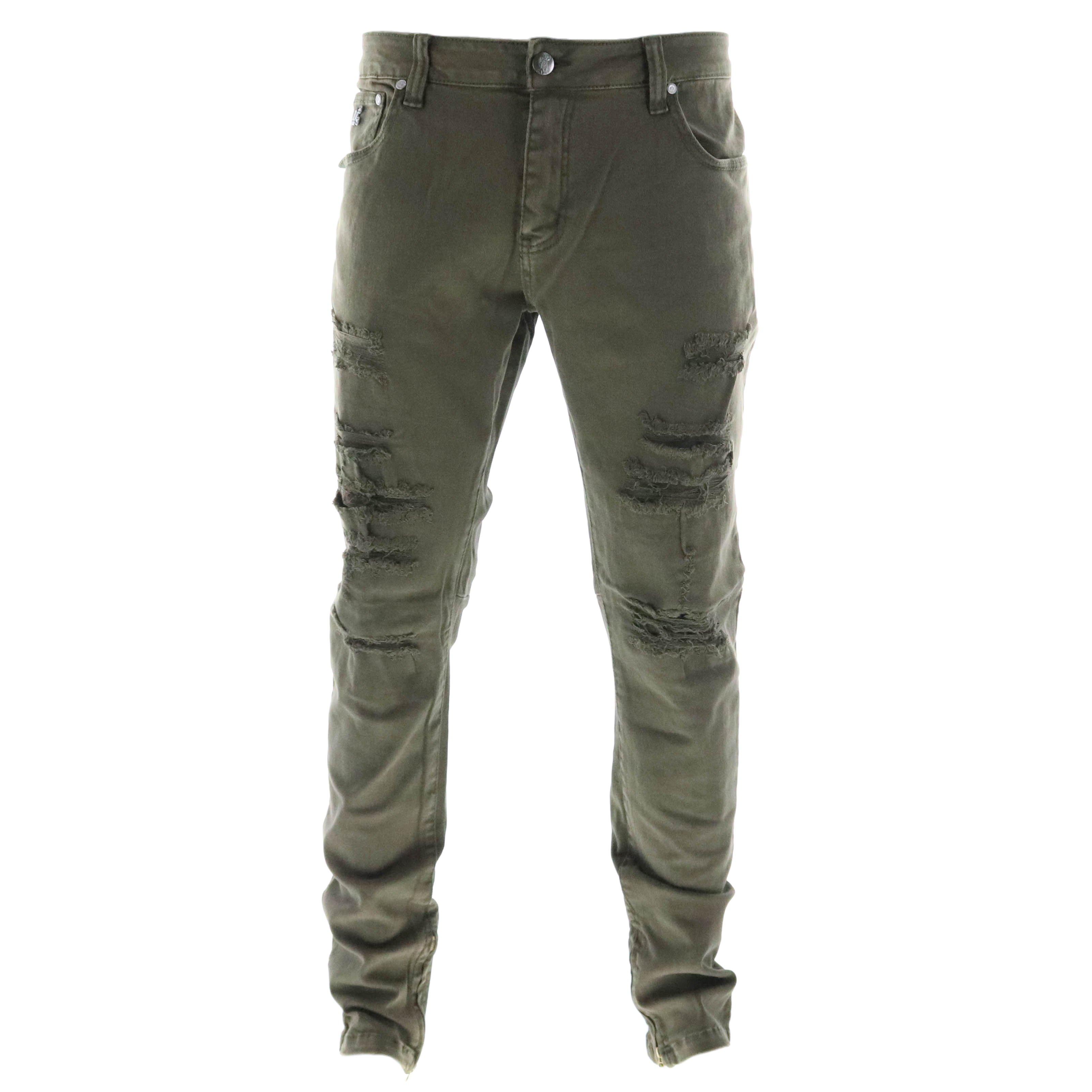 Product id: Olive green best sale distressed jeans