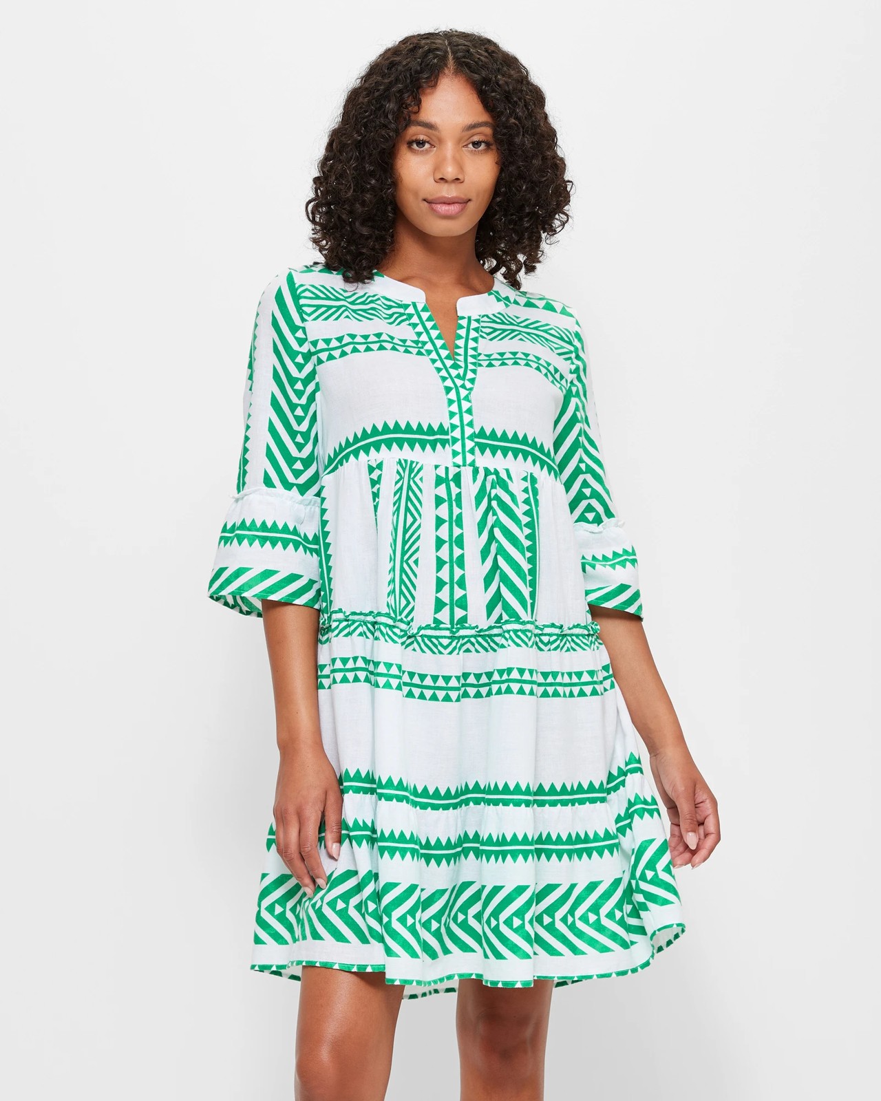 Product id: Green and best sale white dress